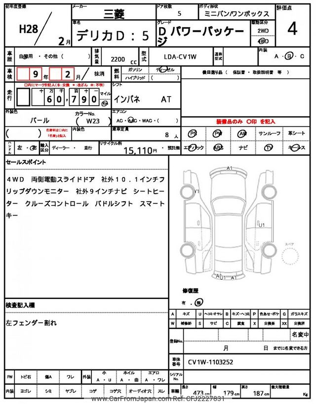 Mitsubishi Delica D5 2016 for sale in Zambia (Zmw. 437,013)