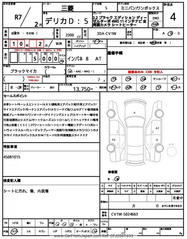 Mitsubishi Delica D5 2025 for sale in Zambia (Zmw. 776,090)