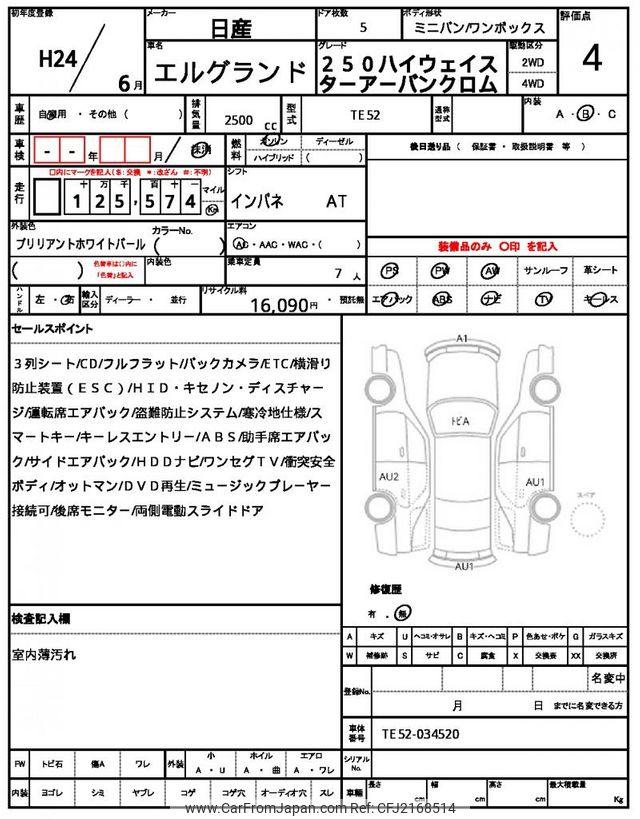 Nissan Elgrand 2012 for sale in Zambia (Zmw. 163,918)