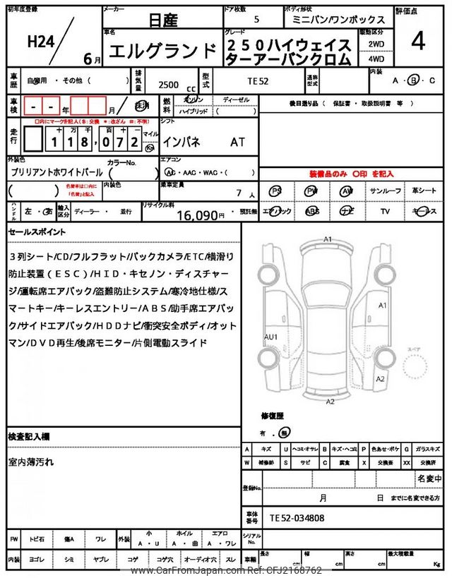 Nissan Elgrand 2012 for sale in Zambia (Zmw. 164,474)
