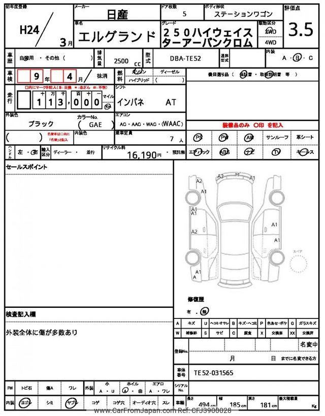 Nissan Elgrand 2012 for sale in Zambia (Zmw. 136,314)