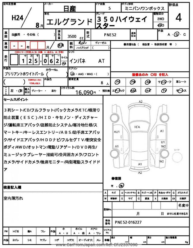 Nissan Elgrand 2012 for sale in Zambia (Zmw. 140,717)
