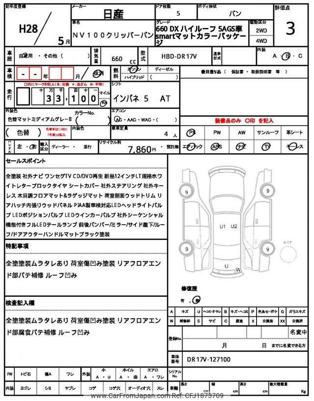 Nissan NV100 Clipper 2016 for sale in Zambia (Zmw. 211,752)