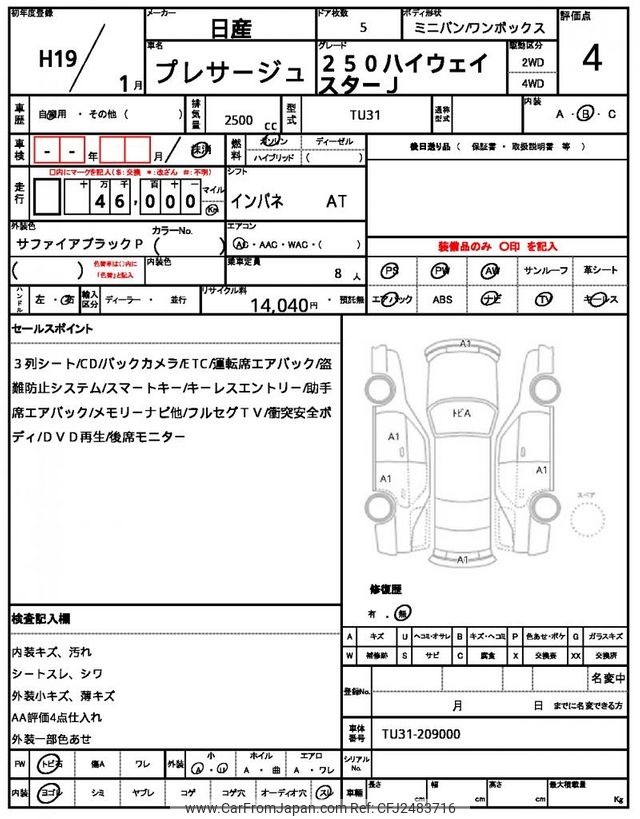 Nissan Presage 2007 for sale in Zambia (Zmw. 128,221)