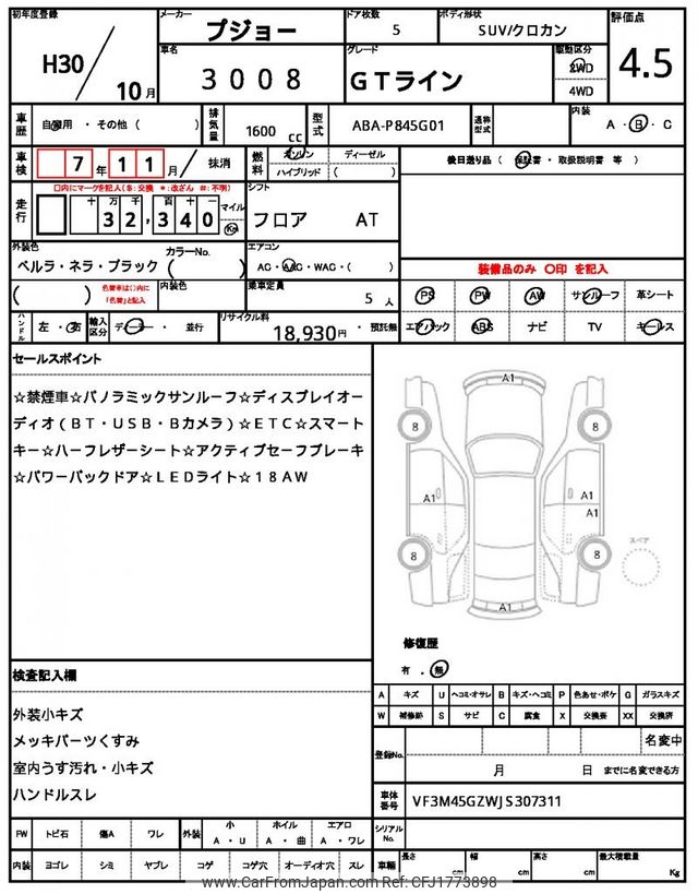 Peugeot 3008 2018 for sale in Zambia (Zmw. 302,848)