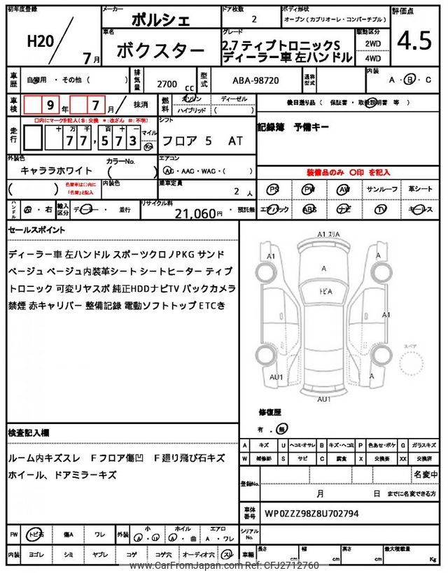 Porsche Boxster 2008 for sale in Zambia (Zmw. 426,053)