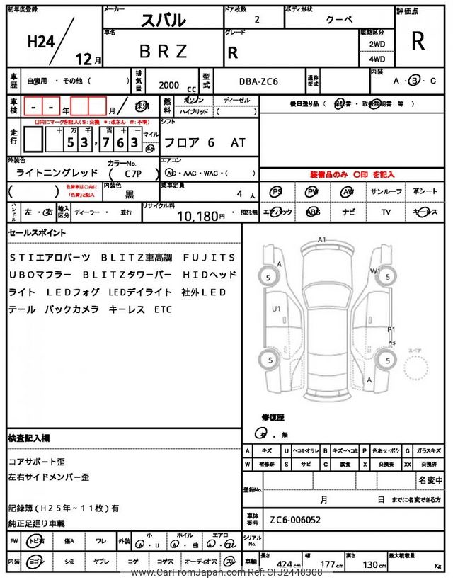 Subaru BRZ 2012 for sale in Zambia (Zmw. 202,506)