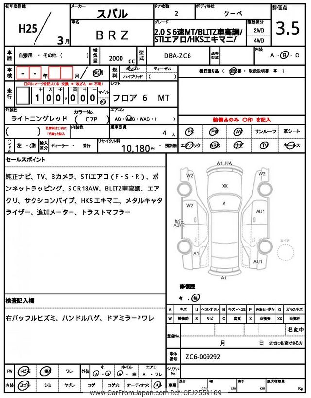 Subaru BRZ 2013 for sale in Zambia (Zmw. 266,721)
