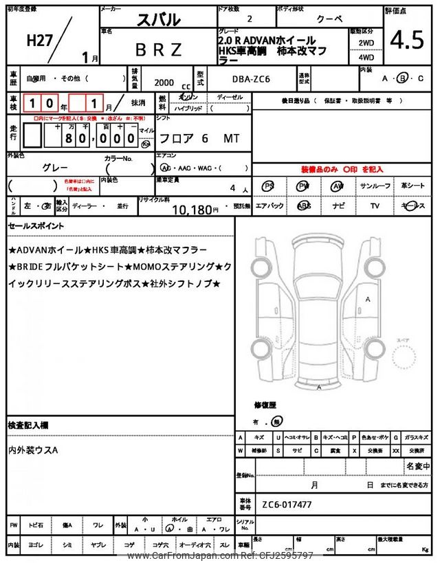 Subaru BRZ 2015 for sale in Zambia (Zmw. 254,511)