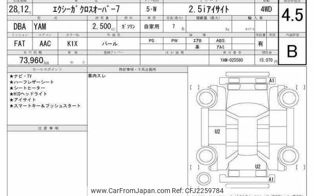 Subaru Exiga Crossover 7 2016 for sale in Zambia (Zmw. 222,018)