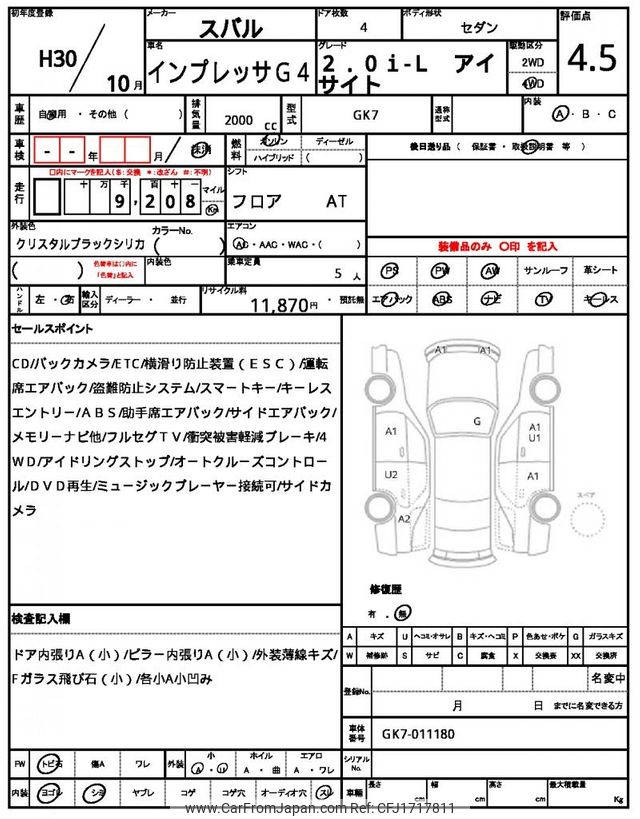 Subaru Impreza G4 2018 for sale in Zambia (Zmw. 259,633)