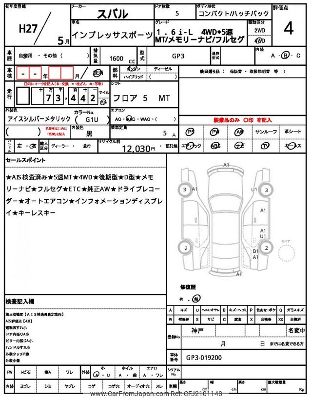 Subaru Impreza Sports 2015 for sale in Zambia (Zmw. 204,219)