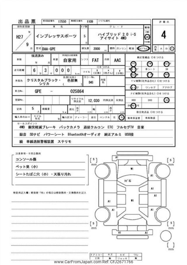 Subaru Impreza Sports 2015 for sale in Zambia (Zmw. 178,381)