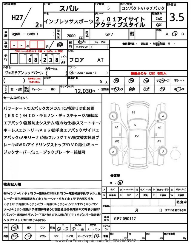 Subaru Impreza Sports 2015 for sale in Zambia (Zmw. 169,310)