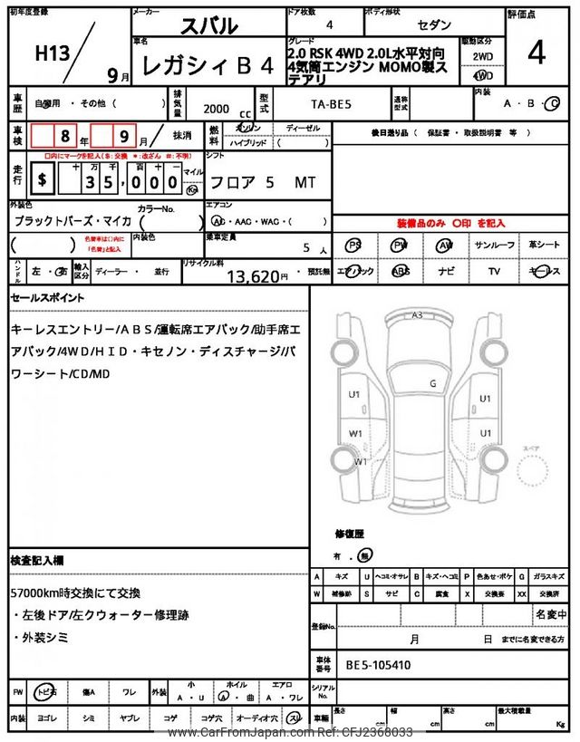 Subaru Legacy B4 2001 for sale in Zambia (Zmw. 280,201)