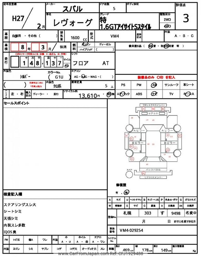 Subaru Levorg 2015 for sale in Zambia (Zmw. 118,524)