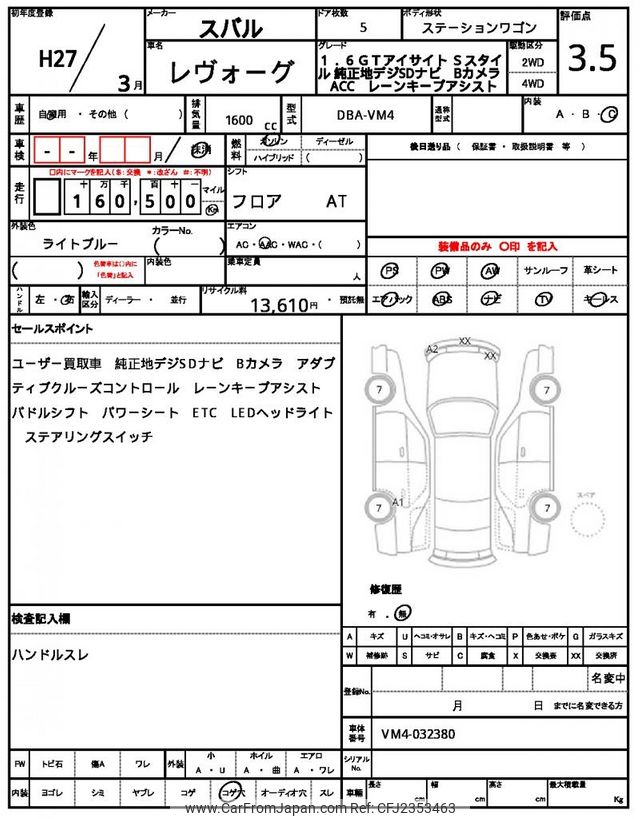 Subaru Levorg 2015 for sale in Zambia (Zmw. 112,251)