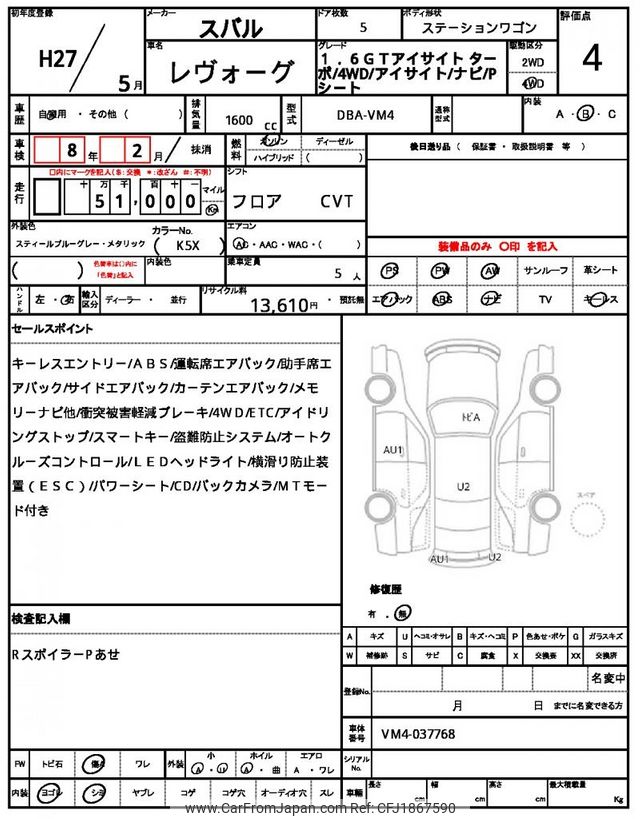 Subaru Levorg 2015 for sale in Zambia (Zmw. 194,327)