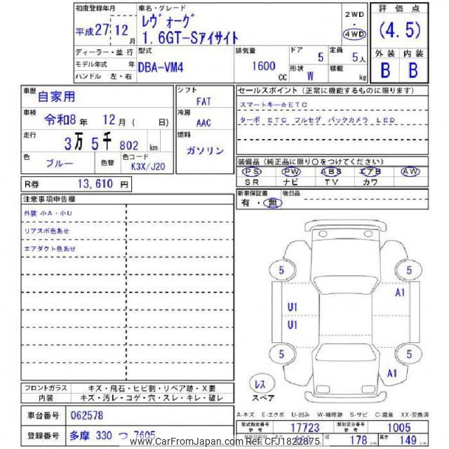 Subaru Levorg 2015 for sale in Zambia (Zmw. 271,977)