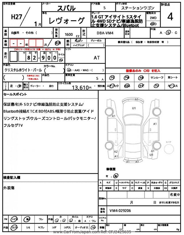 Subaru Levorg 2015 for sale in Zambia (Zmw. 203,762)