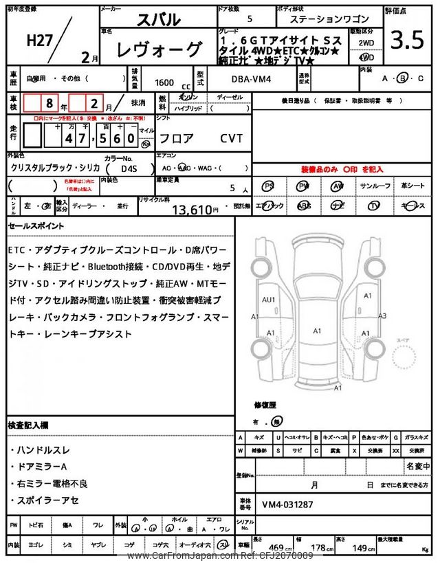 Subaru Levorg 2015 for sale in Zambia (Zmw. 202,498)