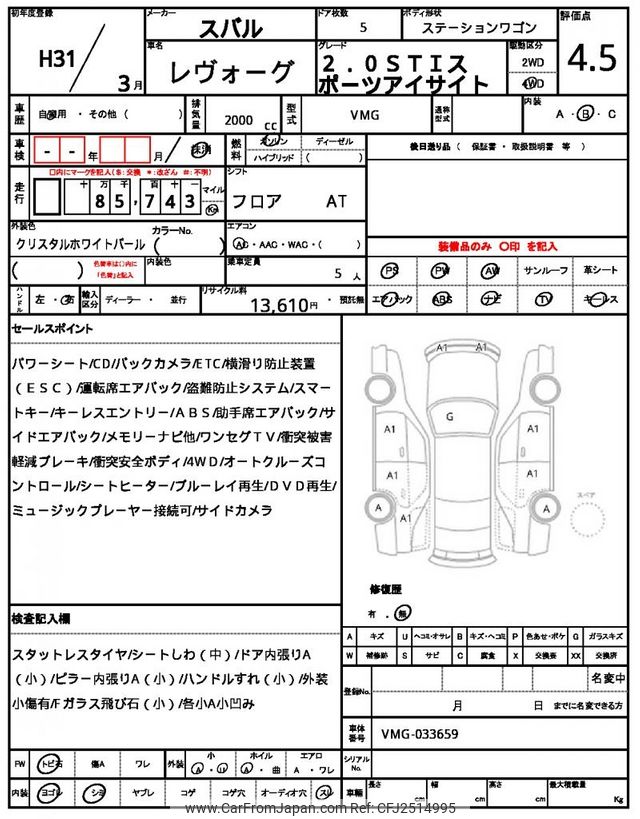 Subaru Levorg 2019 for sale in Zambia (Zmw. 308,348)