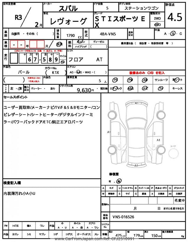 Subaru Levorg 2021 for sale in Zambia (Zmw. 372,194)