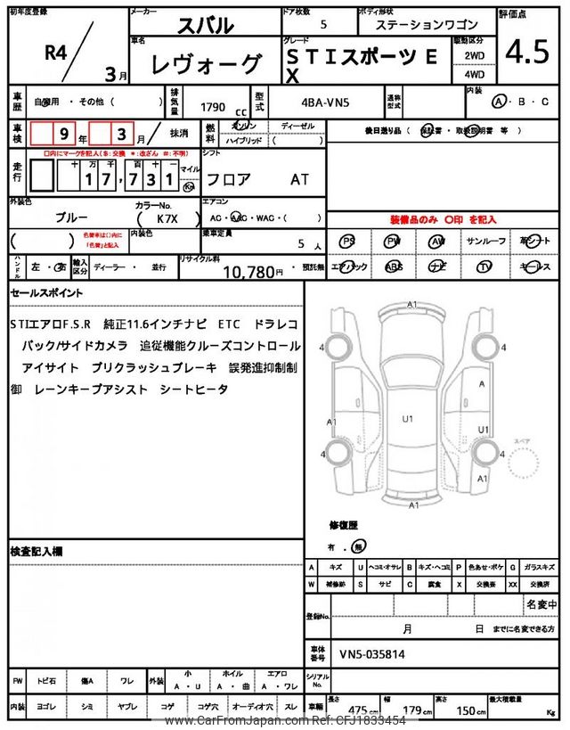 Subaru Levorg 2022 for sale in Zambia (Zmw. 561,658)