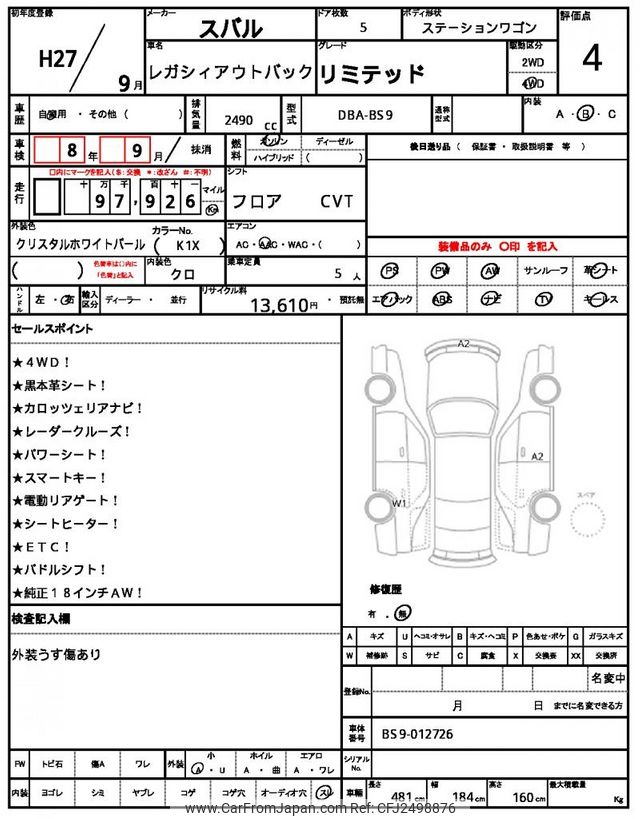 Subaru Outback 2015 for sale in Zambia (Zmw. 186,702)