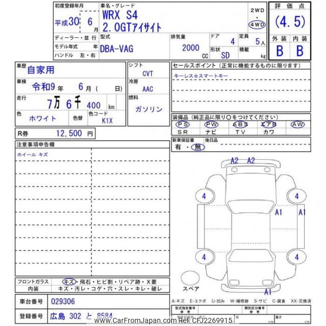 Subaru Wrx S4 2018 for sale in Zambia (Zmw. 373,124)