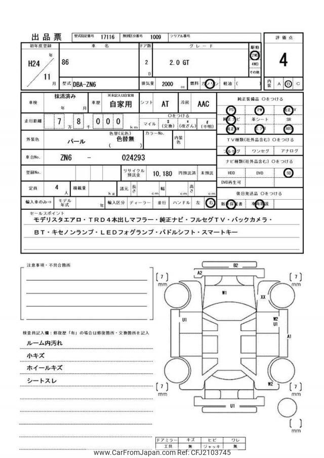 Toyota 86 2012 for sale in Zambia (Zmw. 233,244)