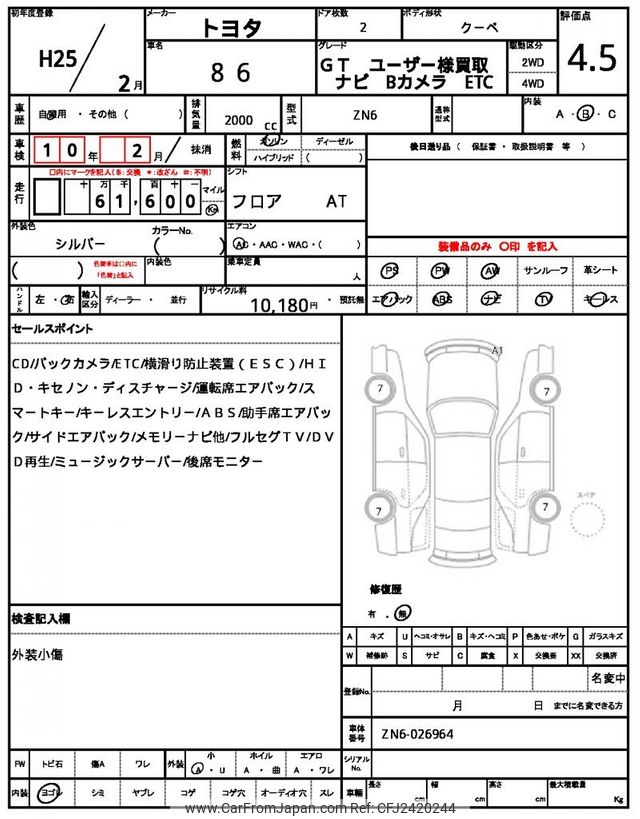 Toyota 86 2013 for sale in Zambia (Zmw. 227,854)