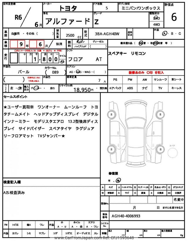 Toyota Alphard 2024 for sale in Zambia (Zmw. 992,555)