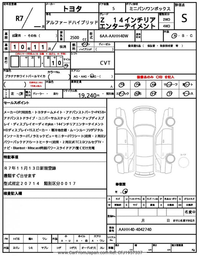 Toyota Alphard 2025 for sale in Zambia (Zmw. 1,312,131)