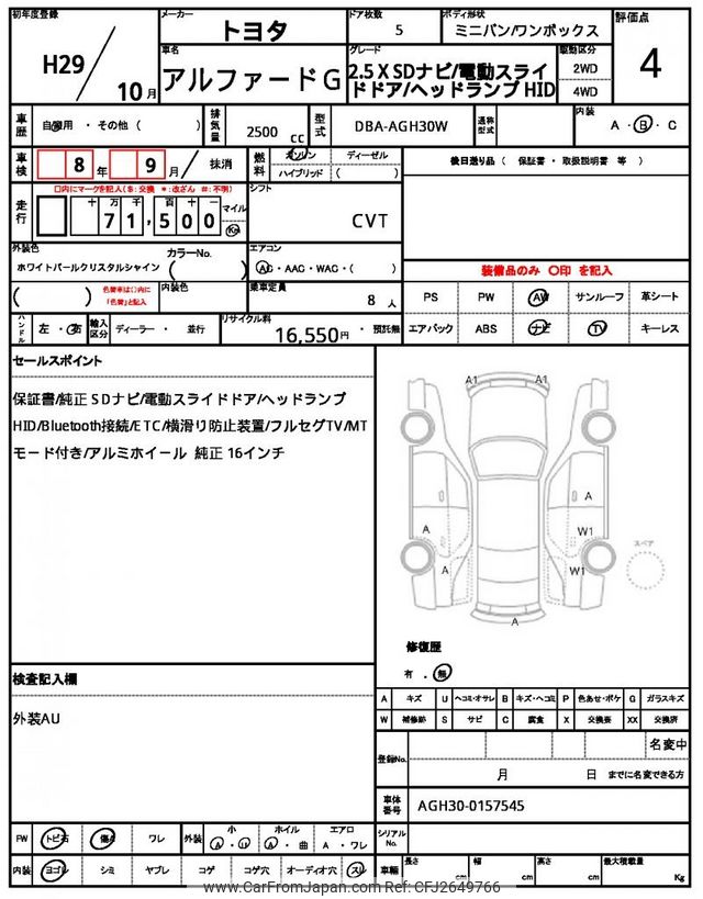 Toyota Alphard G 2017 for sale in Zambia (Zmw. 357,125)
