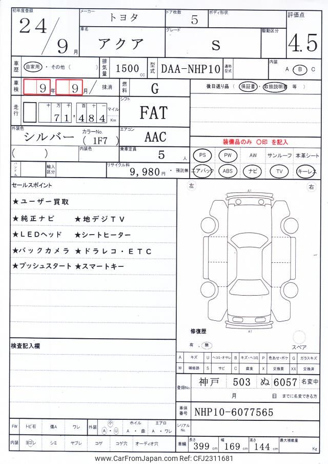 Toyota AQUA 2012 for sale in Zambia (Zmw. 161,147)
