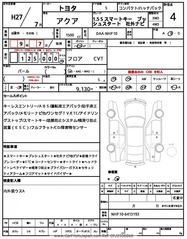 Toyota AQUA 2015 for sale in Zambia (Zmw. 166,873)