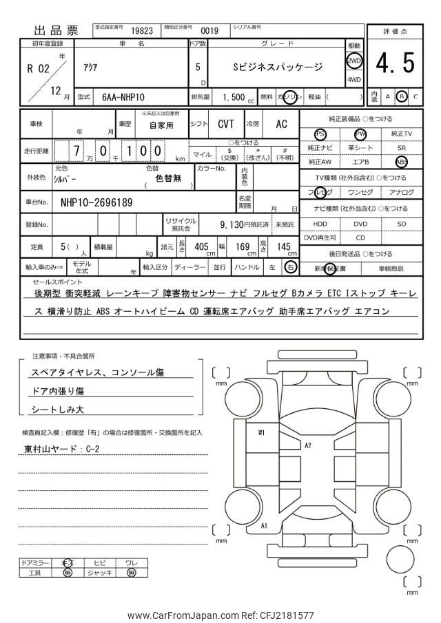 Toyota AQUA 2020 for sale in Zambia (Zmw. 183,483)