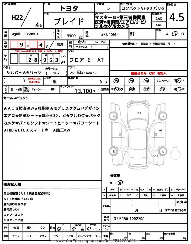 Toyota Blade 2010 for sale in Zambia (Zmw. 380,133)