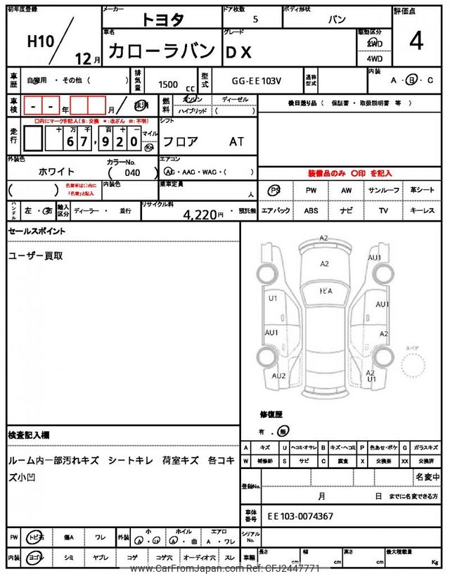 Toyota Corolla Van 1998 for sale in Zambia (Zmw. 196,690)
