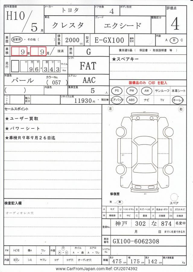 Toyota Cresta 1998 for sale in Zambia (Zmw. 167,169)