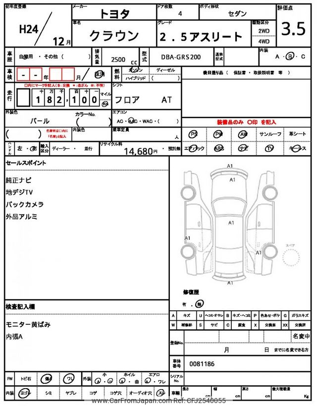 Toyota Crown 2012 for sale in Zambia (Zmw. 128,724)