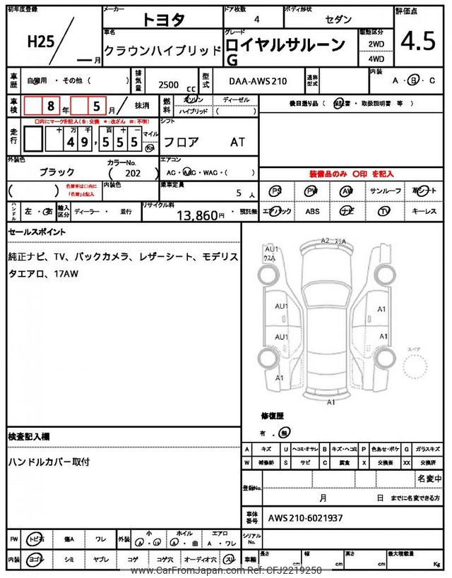 Toyota Crown Hybrid 2013 for sale in Zambia (Zmw. 351,288)