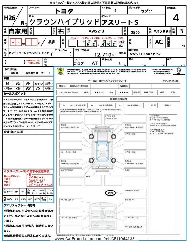 Toyota Crown Hybrid 2014 for sale in Zambia (Zmw. 365,481)
