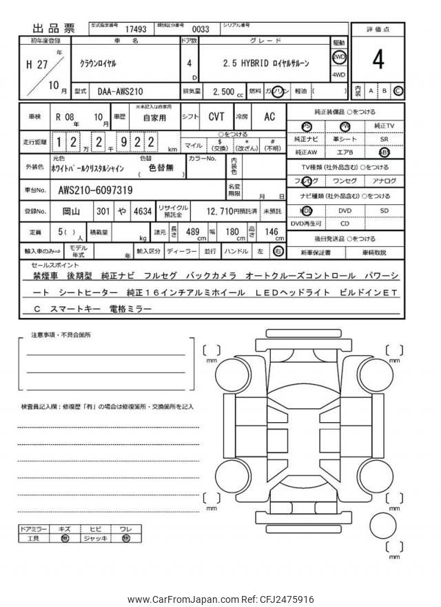Toyota Crown Hybrid 2015 for sale in Zambia (Zmw. 256,579)