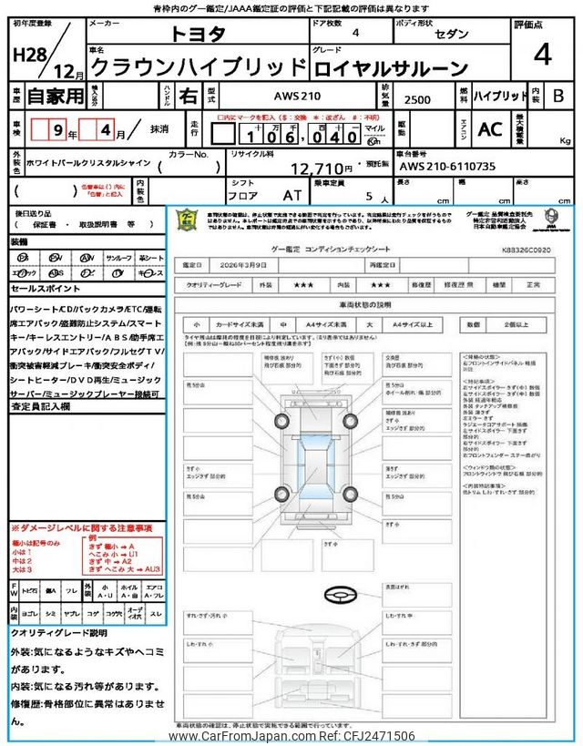 Toyota Crown Hybrid 2016 for sale in Zambia (Zmw. 292,419)