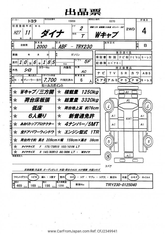 Toyota Dyna Truck 2015 for sale in Zambia (Zmw. 277,406)