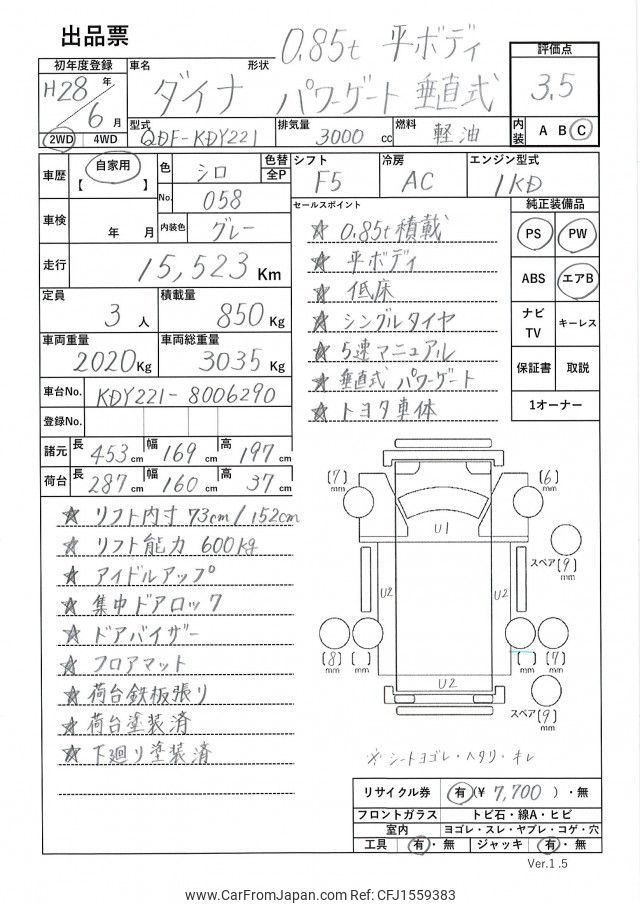 Toyota Dyna Truck 2016 for sale in Zambia (Zmw. 459,710)