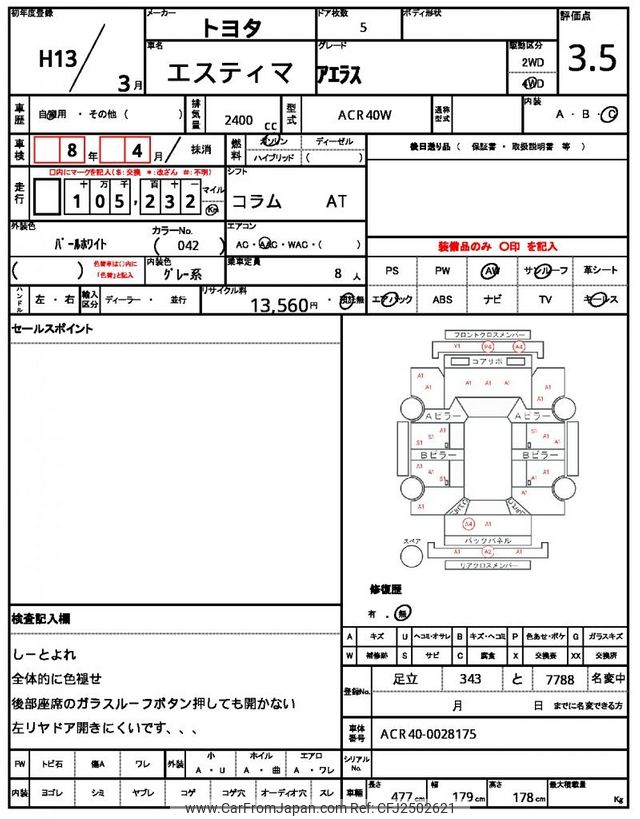 Toyota Estima 2001 for sale in Zambia (Zmw. 116,877)
