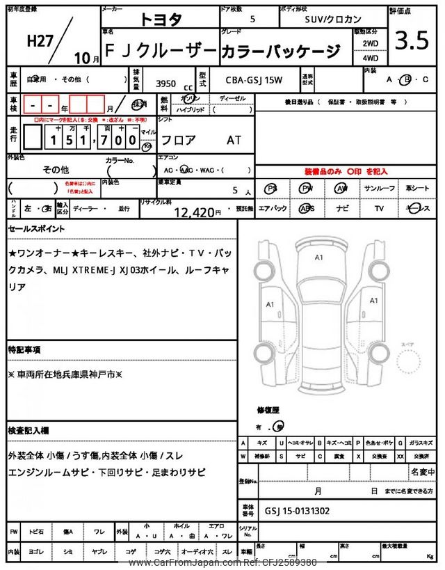 Toyota FJ Cruiser 2015 for sale in Zambia (Zmw. 302,527)